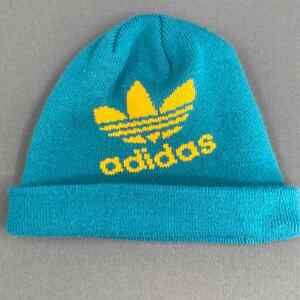 Adidas Beanie Ski Hat Adult OS Teal Yellow 3 leaf Logo Knit Thermal Snowboad Cap