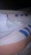 Adidas Beige Sneakers with Blue Stripes SIZE 9.5