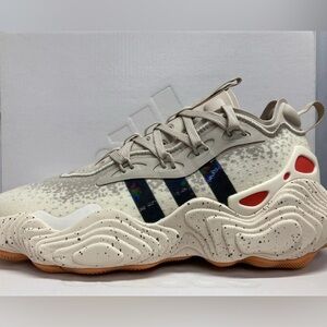 Adidas sneakers in beige with black stripes. Features red accents. Stylish and comfortable.
