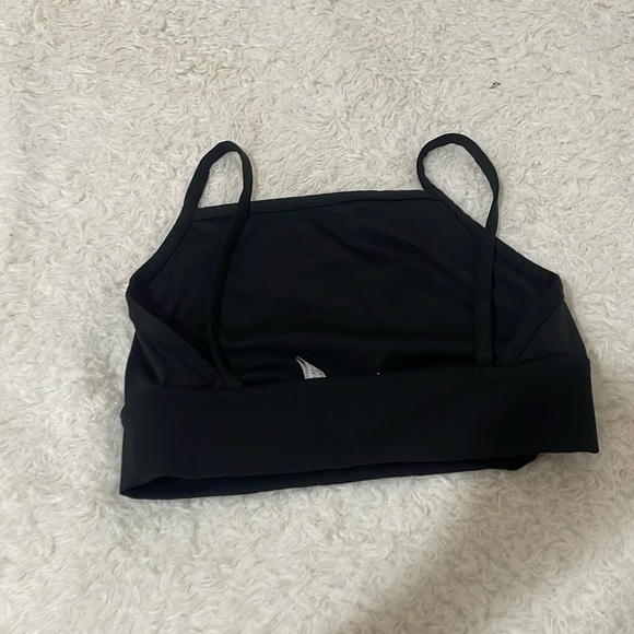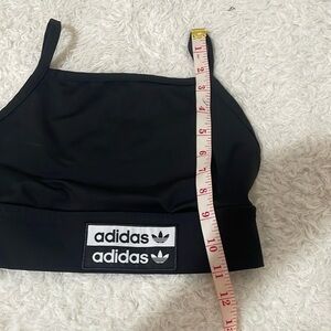 Comfortable black athletic bra with iconic Adidas logo. Ideal for active wear.