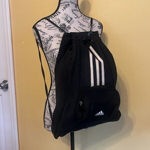 Sleek Adidas backpack featuring cream stripes. Ideal for daily use.