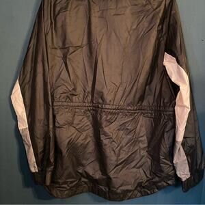 This is a lightly used Adidas Black Cinch Waist Lightweight Hooded Marathon Windbreaker Jacket. The pit to pit measurement is 21 inches. It is a mens size medium and is in great used condition!