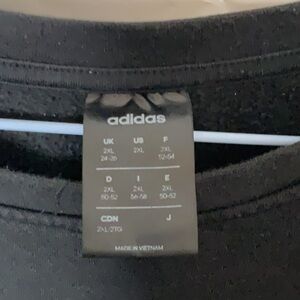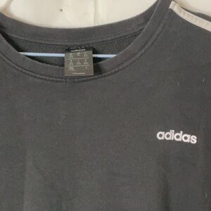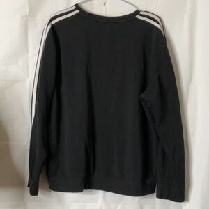 Embrace a sporty aesthetic with the Adidas Black Crewneck Sweater, showcasing the brand's signature white stripes along the sleeves. This classic piece offers a comfortable fit and a timeless design, perfect for casual outings or athletic activities.