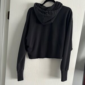 This Adidas black cropped sweater combines style and comfort, featuring the iconic logo on the front. Its casual athletic design makes it perfect for everyday wear, offering a sleek and modern look.