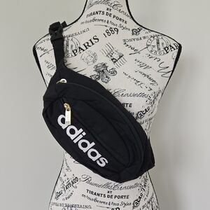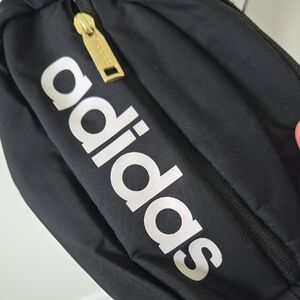 Sleek black crossbody bag with prominent Adidas branding. Secure zip closure and adjustable strap for comfort.