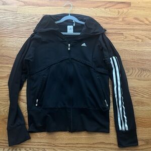 Lightweight full-zip hoodie with signature Adidas 3-stripe detail. Perfect for workouts or layering on casual days.