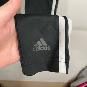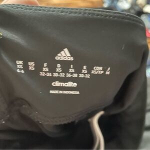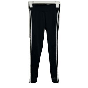 Gently worn women's size xs Adidas black classic striped high waisted activewear leggings. Please review all photos for any signs of wear-pictured as is. Disclaimer: Any items with any wear/staining has not been treated, and unsure of ability to remove/treat condition. Comes from a smoke free home, bundle with other items to save & minimize shipping cost.
