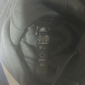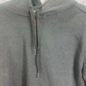 The Adidas Black Hoodie Sweatshirt with Floral Sleeves in size L is a stylish and comfortable activewear piece for women. Made from a soft cotton blend fleece fabric, this pullover hoodie features a floral pattern on the sleeves and a logo accent. The black color and regular fit make it versatile for all seasons, while the hooded design, graphic print, and pockets add practicality to the stylish floral theme. Perfect for any occasion, this Adidas hoodie from the Flowers product line is a must-have for any fashion-forward woman.