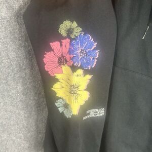 Adidas Black Hoodie Sweatshirt Grow Through What You Go Through Floral Sleeves L