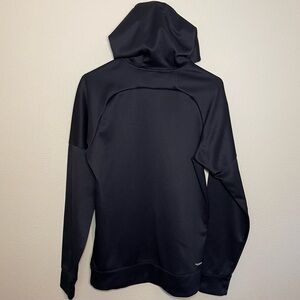 Drawstring hood and kangaroo pocket. Ribbing at cuffs and hem. Casually slip on this adidas sweatshirt after your daily workout, or throw it on in a rush on your way to class. Climawarm, 100% polyester. Approximate measurements laying flat: the chest is 20” and the length is 27”. One aglet cover on drawstring is missing - see photos. Excellent condition. Size S