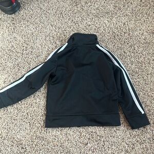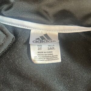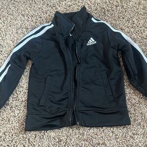 Classic Adidas jacket in black with signature white stripes. Ideal for everyday wear.