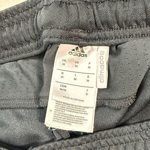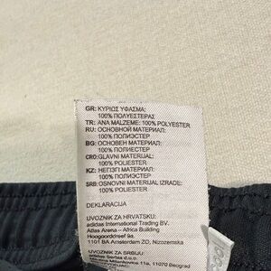 Comfortable black joggers featuring classic white stripes. Elastic waistband for a snug fit. Perfect for casual wear.