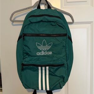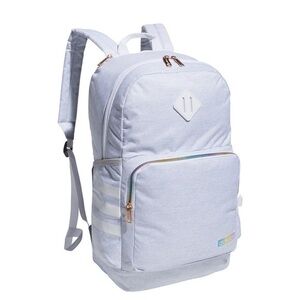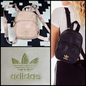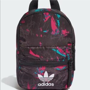 Sleek black mini backpack featuring iconic white Adidas stripes. Perfect for daily essentials.