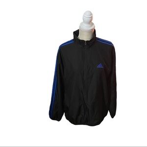Adidas Black & Periwinkle Full Zippered Long Sleeve Meshed Lined 2 Slit Pockets Mock Neck Track Jacket Men’s Size Small. This jacket is preowned and in very good condition.
