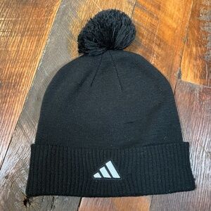 Adidas Black Pom Pom Beanie Hat with Embroidered Logo One Size