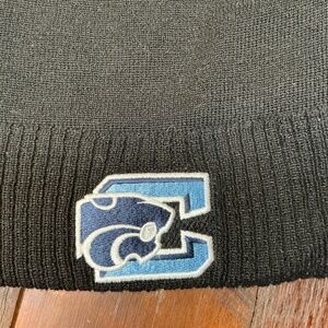 Stay warm and stylish with this Adidas black knit pom pom beanie featuring a fold-over cuff and embroidered Adidas logo. The front also showcases a wildcat logo with a bold “C,” perfect for sports fans, school spirit wear, or casual streetwear. Made with recycled polyester, this hat is both cozy and eco-friendly.