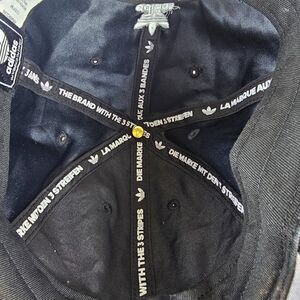 Adidas Black Suede White Embroidered Logo Adjustable Baseball Hat.