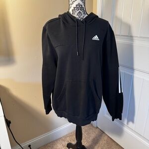 Black with white stripes Adidas sweatshirt with front pocket. Used in great condition, smoke free home.