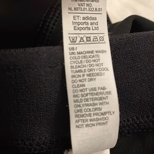 Black, Techfit, Climalite, pull on, fitted, athletic shorts by Adidas in a women's size small. One side has a white graphic heat transfer of sweat rep set printed vertically. Adidas logo in silver. Fabric is a polyester and elastane blend. Machine washable. Approximate measurements shown in photos. In great pre-owned condition with little to no signs of wear.