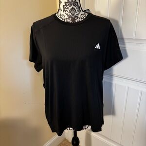 Sleek black tee featuring iconic white Adidas logo. Ideal for everyday wear.