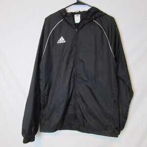 Adidas Black Windbreaker Rain Jacket Men's Medium Basic Sporty Zip Hood Pockets