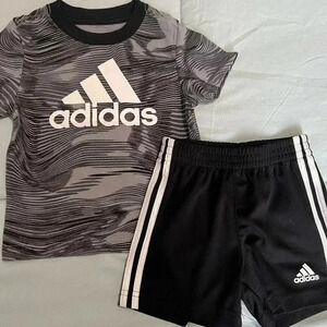 Adidas Black and Grey Matching Shorts and Shirt 12 Months