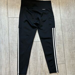 Experience the perfect blend of style and comfort with these Adidas leggings, featuring a sleek black design accented by the iconic three white stripes. Crafted from a stretchy, athletic material, these leggings offer a snug fit ideal for workouts or casual wear. The elastic waistband ensures a secure fit, making them a versatile addition to your activewear collection.