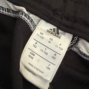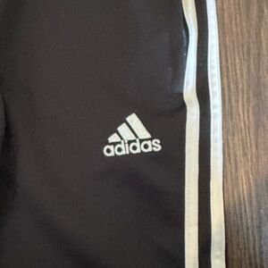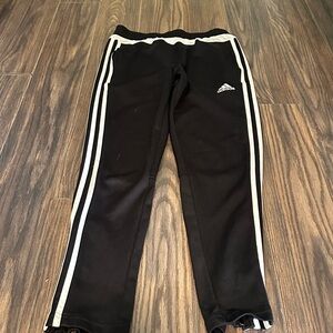 Adidas Black and White Pants with Iconic Three-Stripe Design
