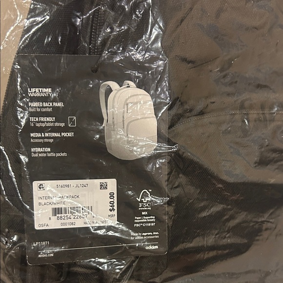 Adidas Black and White Tech Backpack