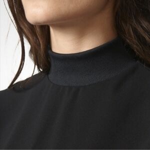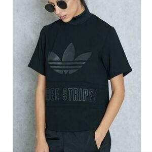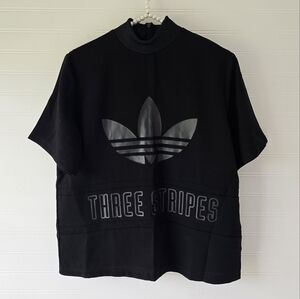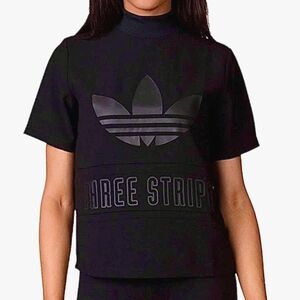 Adidas Black on Black Trefoil Three Stripes Graphic High Neck Short Sleeve Top M