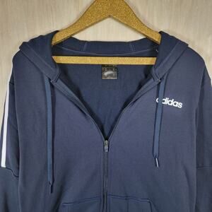 Adidas Blue 3 Stripe Full Zip French Terry Hoodie Jacket Sweater Size Medium