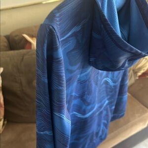 Stylish blue Adidas hoodie with a bold logo. Perfect for casual wear.