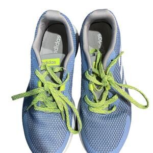Like new, work once briefly with box size 7 blue, gray and green running shoes by Adidas in excellent preowned condition.