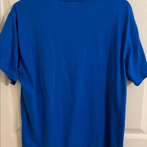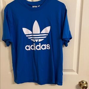 Classic blue Adidas shirt featuring a bold white logo. Comfortable and stylish.