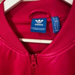 Vibrant hot pink Adidas jacket with classic design. Features a full zip closure.