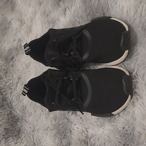 Stylish black athletic sneakers with white soles. Perfect for casual wear or workouts.
