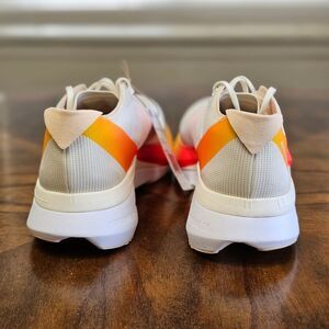 Step up your game with Adidas women's running shoes. Featuring a vibrant mix of white, orange, and pink, these shoes offer both style and performance.