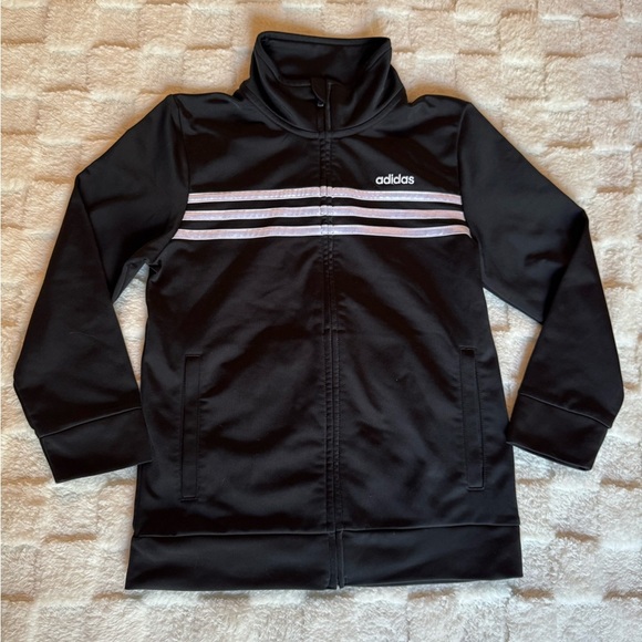 Adidas Boy’s Black Athletic Outwear Jacket With Pockets and Full Zip Up, Size 7