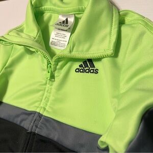 Adidas Boys Iconic Tricot Full Zip Jacket size 24 Months Neon Green, Gray, Black