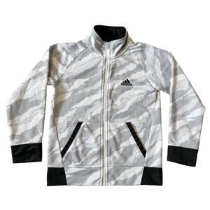 Adidas Boys Track Jacket Zip Up Athletic Dot Wave Pattern White Black Sporty