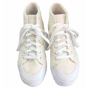 The upper is made of ivory canvas. The laces, eyelets, soles, and other details were done in white.