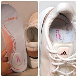These Adidas shoes were worn only about two times and remain in excellent, almost new condition. The original insoles have been replaced with Dansco brand insoles, known for their great comfort and support. The change was made purely for personal comfort preference and does not affect the quality or performance of the shoes