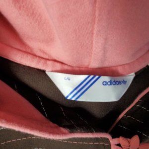 Adidas Striped brown hoodie sweatshirt. button closure, 2 front pockets,