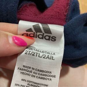 Gently worn boy's size 2T adidas burgundy and blue full zip athletic hoodie sweatshirt. Comes from a smoke free home, bundle with other items to save & minimize shipping cost.