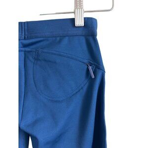 • Mystery Blue Color/Elasticized Waist/Contrast Mesh Panel Accents/Side Tonal Mesh Striping Logo Detail/Back Zipper Pocket/Banded Leg Openings/Recycled Poly 85%/Spandex 15%