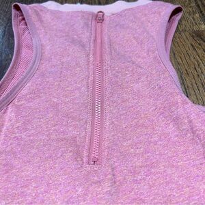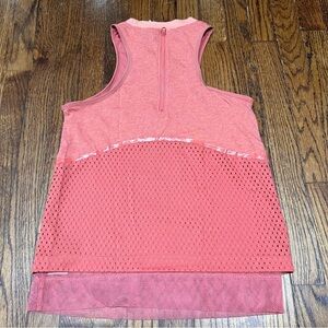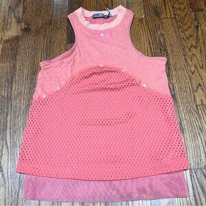 Gently used Adidas By Stella McCartney Coral color cotton blend sleeveless tank top with mesh lining / perforated fabric / partial back zip closure / activewear. Perfect for yoga or workouts. In excellent preowned condition with intact seams. Size: XS Approx.