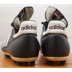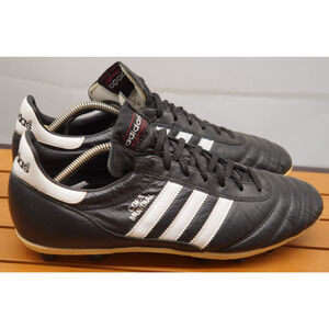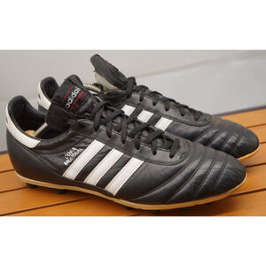 The Adidas COPA MUNDIAL SOCCER CLEATS are high-quality men's soccer cleats designed and manufactured in Germany. These black cleats by Adidas, known for their durability and performance, are perfect for soccer players looking for a top-tier option. With a medium width and a US size of 11, these cleats are suitable for a variety of playing styles and provide the support and comfort needed for competitive games. The Adidas COPA MUNDIAL cleats are a reliable choice for serious soccer players looking to elevate their game.