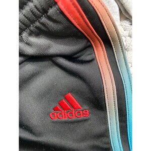 • Long-sleeve heather gray hoodie with rainbow Adidas logo