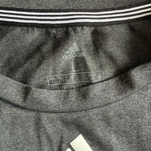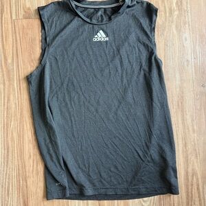 Charcoal sleeveless tee with Adidas logo. Ideal for active wear.
