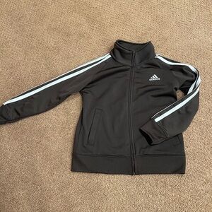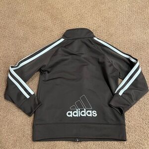 Stylish Adidas tracksuit in chocolate brown with white stripes. Includes jacket and pants.